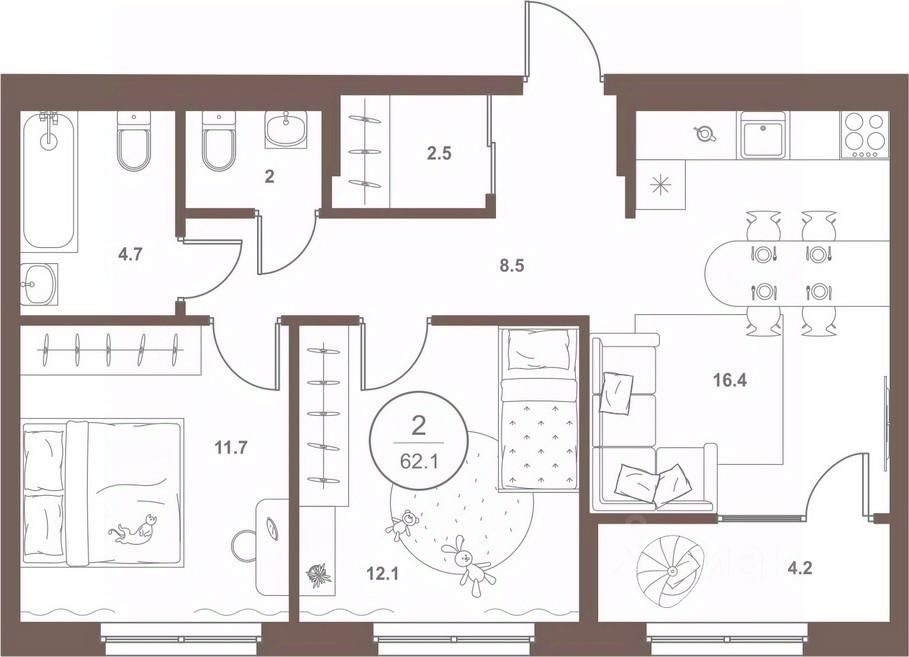 62 м² · Этаж 6 из 18