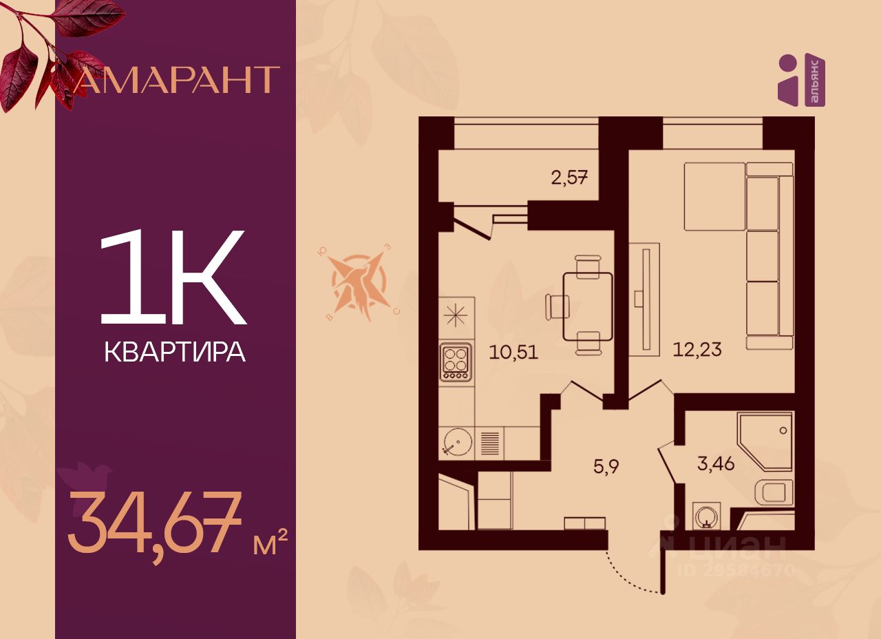 34 м² · Этаж 12 из 17