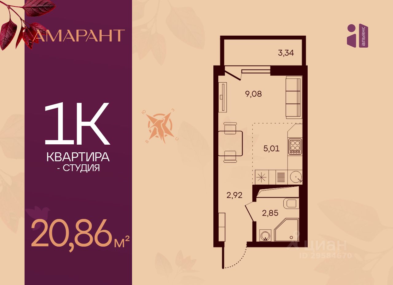20 м² · Этаж 8 из 17