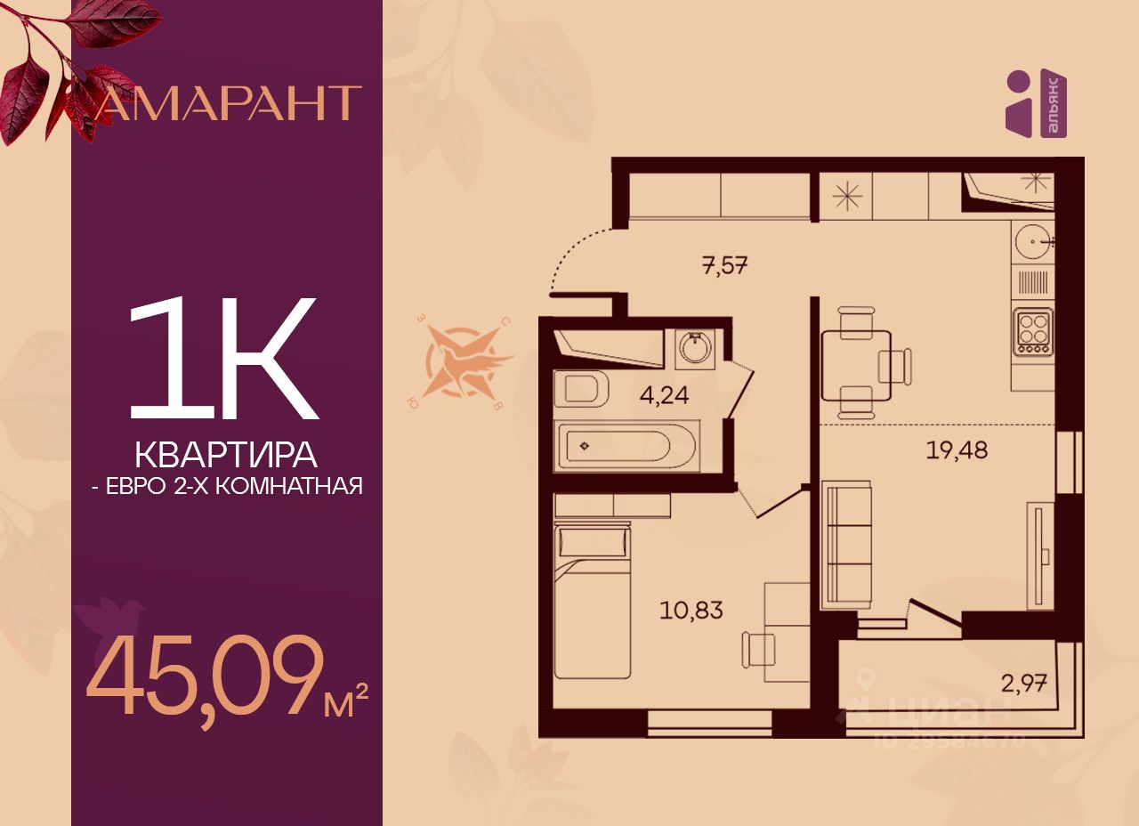 45 м² · Этаж 9 из 17