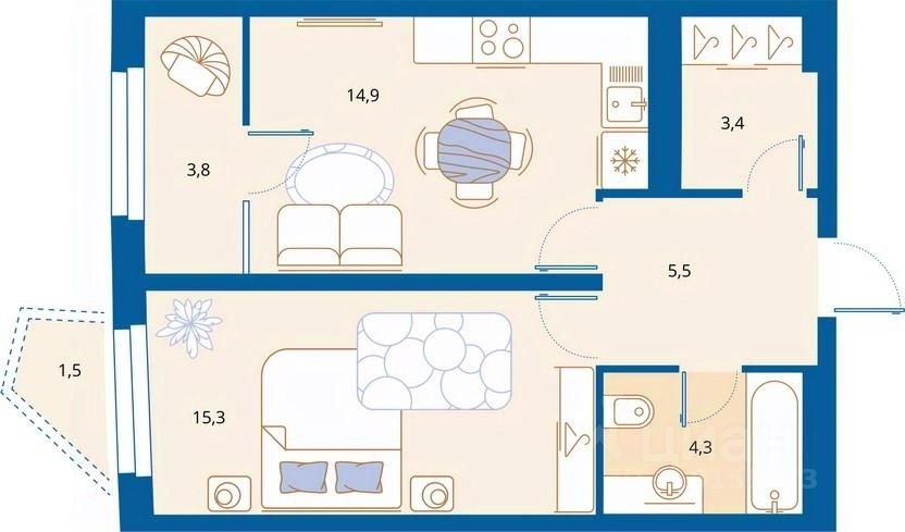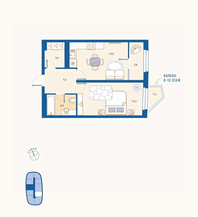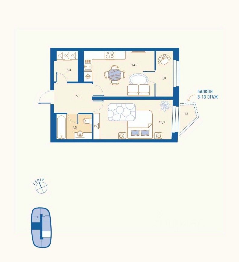 59 м² · Этаж 8 из 16
