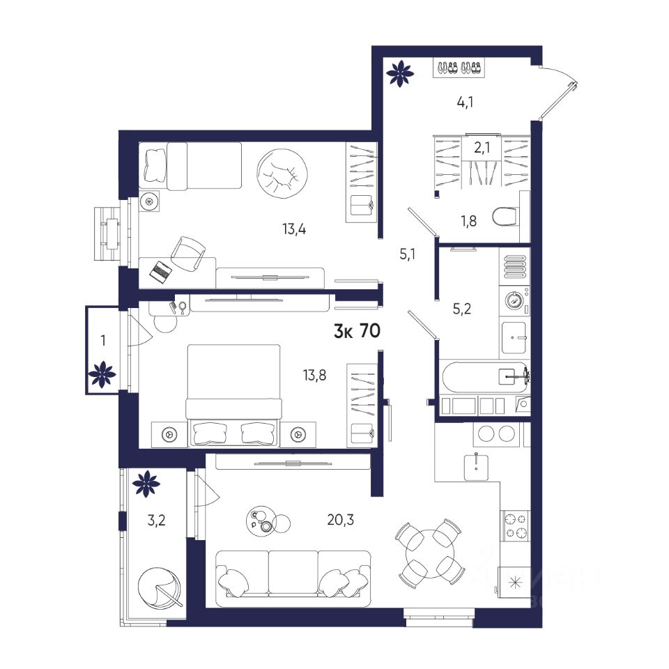 70 м² · Этаж 5 из 8