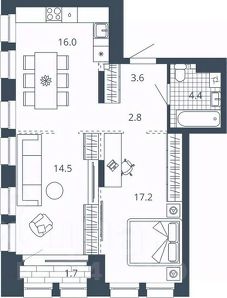 2-к квартира Показать на карте