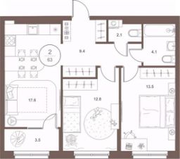 2-к квартира Показать на карте