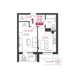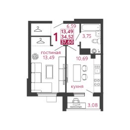 • Минимальная площадь: 37 м²
