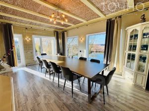 Продаем загородный гостевой дом на берегу озера в 15 минутах езды от города.Адрес: п. Камыши-хвощи Площадь дома: 202 кв.мПлощадь участка: 18 соток Это эксклюзивный проект с прекрасным расположением! Комплекс подходит как для постоянного проживания, так и как дом выходного дня!Коммуникации:- электроэнергия- вода (своя скважина на дом, глубина 75 м)- канализация (выгребная яма)- газ- солевой фильтр на воду- теплые полы Дом из пеноблока 200/300/600 мм. Строили для себя! Для постройки использовали качественные дорогие материалы! Строили по современной технологии, заостряя внимание на каждой мелочи!Фундамент на ж/б забивных сваях 4-6 м 400/400м, фасад стен - металлосайдинг (корабельная доска).На первом этаже дома располагается кухня-гостиная с камином, банкетный зал с панарамными окнами с видом на пруд, 1 спальня. Во второй части дома расположена баня с комнатой отдыха и отдельным выходом на пруд, а также закрытая зона для барбекю. На втором этаже 4 спальни, в двух из которых есть свои сан узлы.На придомовой территории расположены крытая беседка, лобное место, детская площадка, спуск к пруду с местом пляжного отдыха, а также изюминка нашего комплекса - гараж с бильярдом, караоке, барной стойкой, различными настольными играми. Место невероятной красоты!Отличные подъездные пути круглый год! Территория находится под охраной, установлено видеонаблюдение на территории!Звоните, отвечу на все вопросы и с удовольствием проведу показ с более подробным описанием!Номер объекта: #1/569025/10848