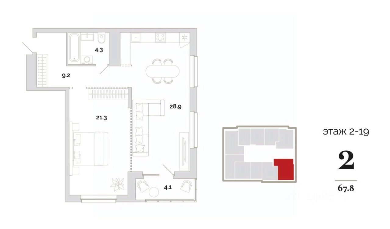 Общая площадь67,8 м2