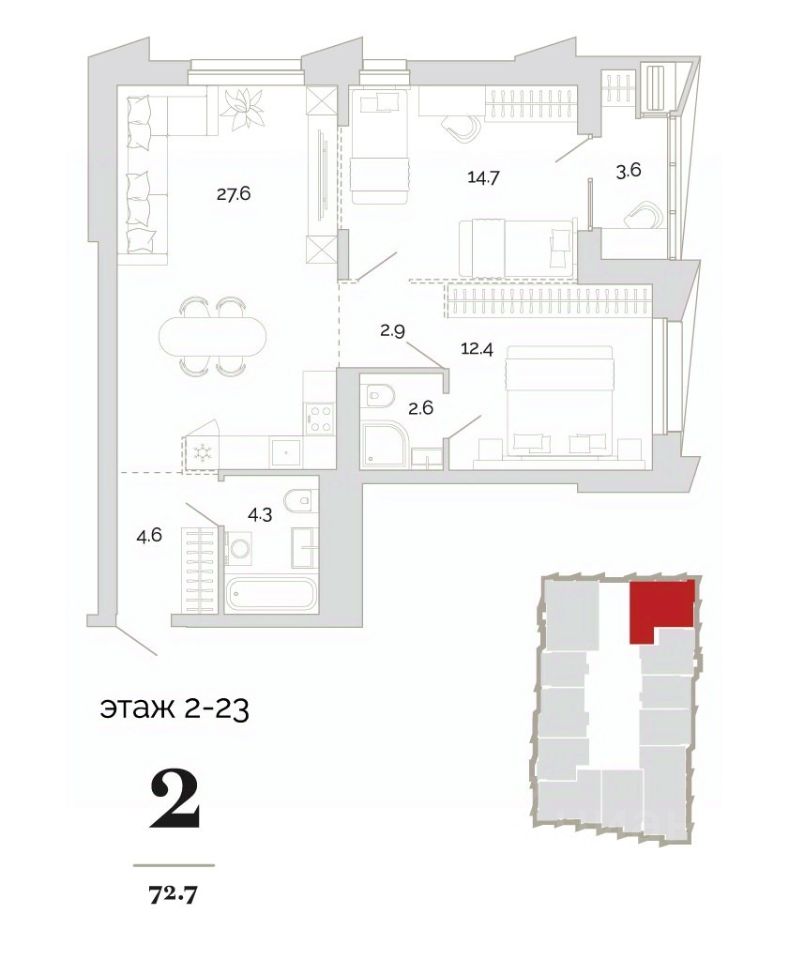 - 2 башни в 19 и 24 этажа, - Торговая линия на 1 этаже, - Панорамное угловое остекление лоджий, - Террасы на высоких этажах с панорамными видами, - Галерея закатов на 24 этаже, - Лаундж-патио на 2 этаже, - Благоустроенный двор с многофункциональным зонированием, - 110 кладовых помещений, - Подземный паркинг на 189 машино-мест, - Большой выбор планировочных решений, - Закрытый двор и собственная система безопасности.