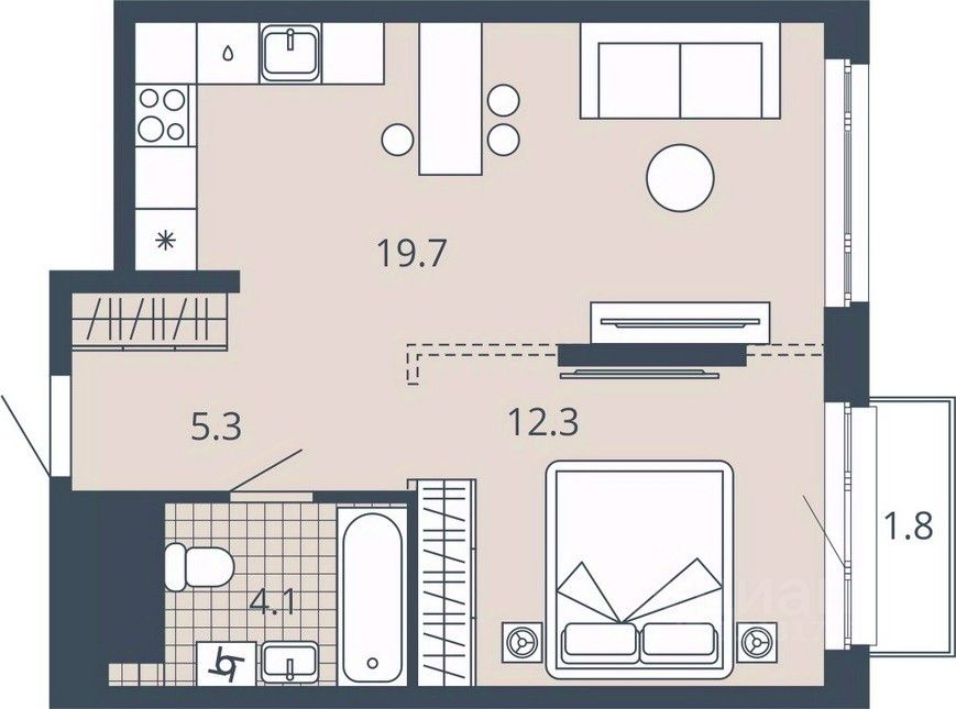 Жилая площадь12,3 м2