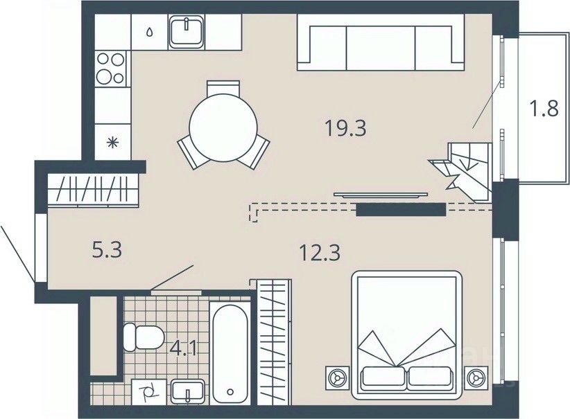 Жилая площадь12,3 м2