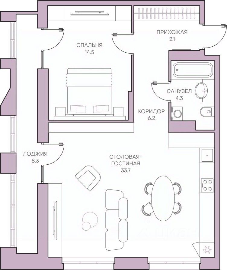 Общая площадь69,1 м2