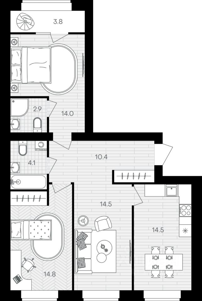 - 20 домов высотой от 7 до 10 этажей,