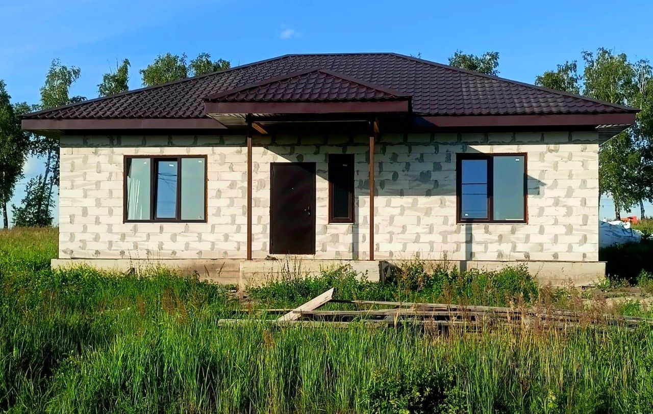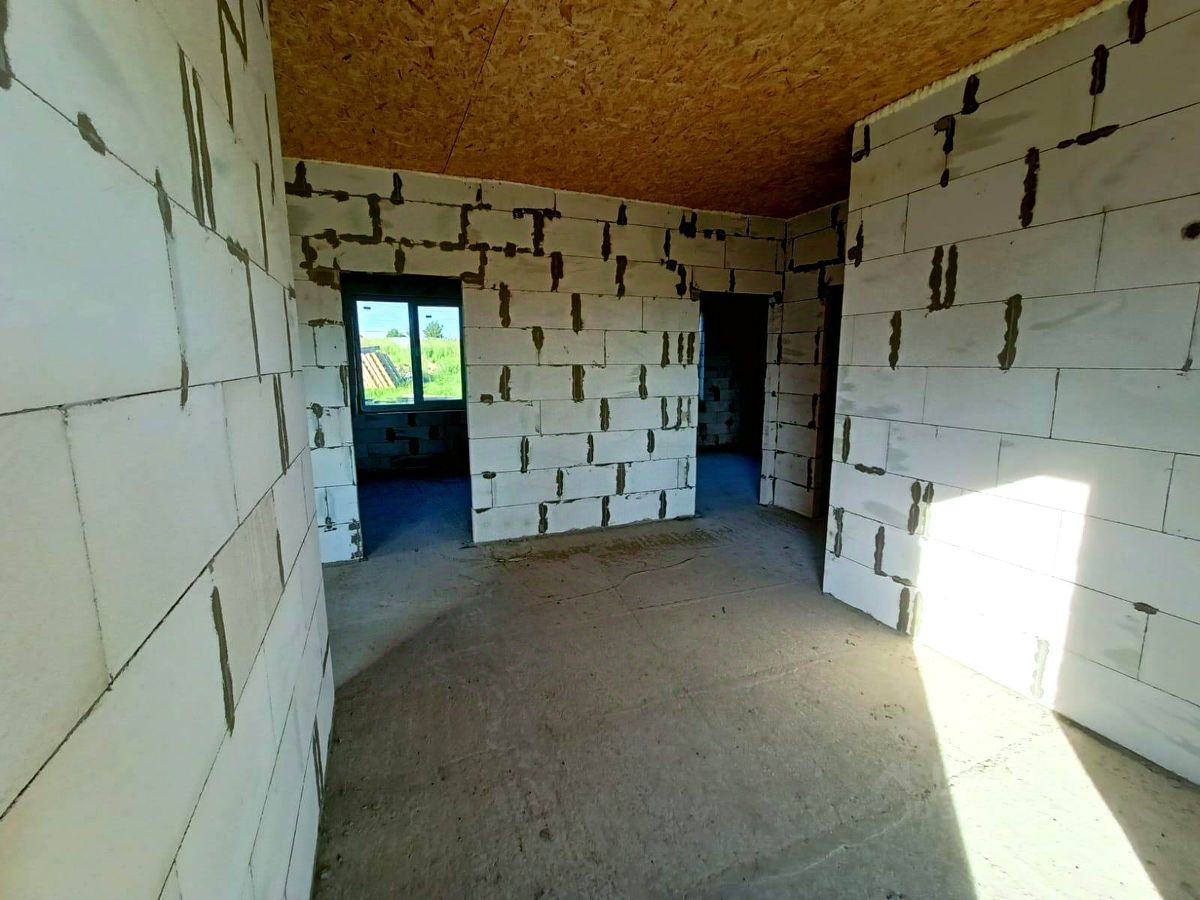 Дом готов из пеноблока (стены на 300 мм) без отделки, 1 этажный (кухня-гостиная, три спальни, сан. узел, коридор, котельная), общая площадь 100 кв.м.