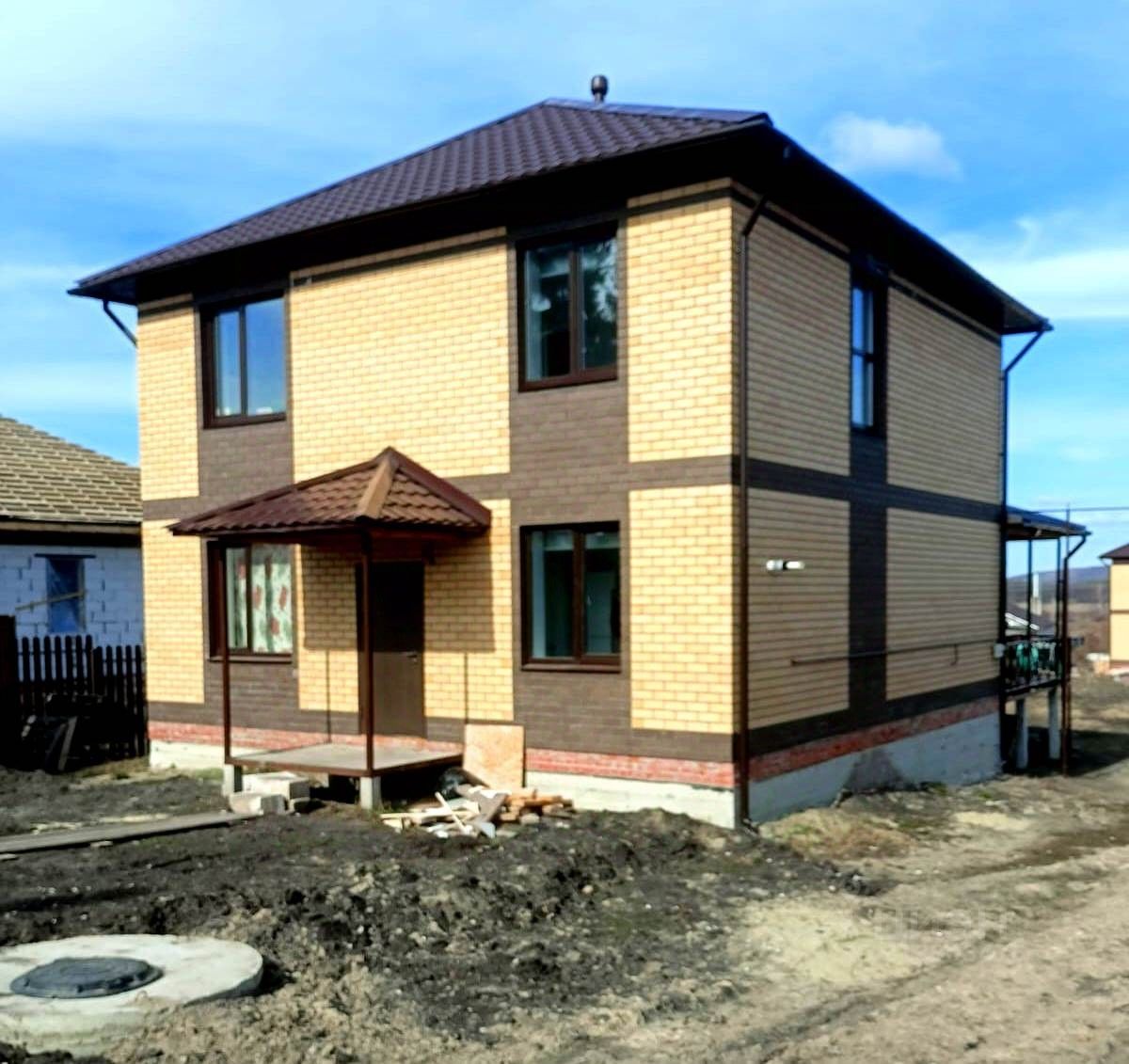 Кирпичный 2-х этажный Дом с предчистовой отделкой на стадии строительства. Общей площадью 140 кв.м. из пеноблока (стены на 300 мм) + облицовочный кирпич.