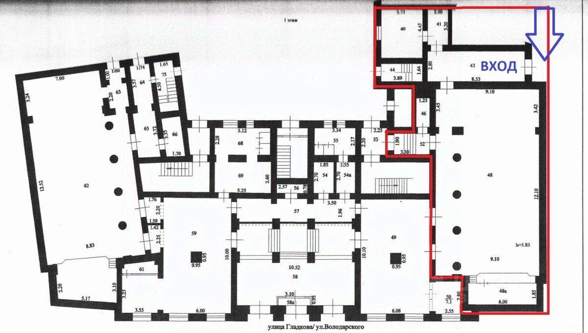Вход в данное помещение располагается со стороны ул. Володарского.