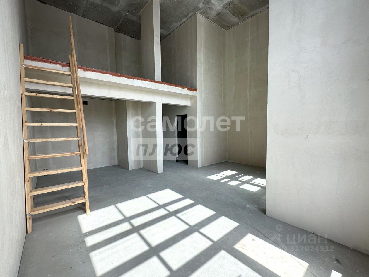 Квартира с кухней-гостиной со ''вторым светом'', где высота потолков составляет 5,72 м. Высота потолков 1 и 2 уровня - по 2,72 м