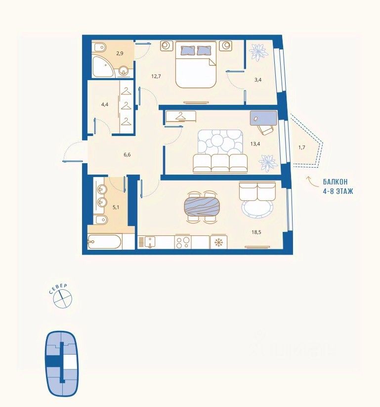 Общая площадь66 м2