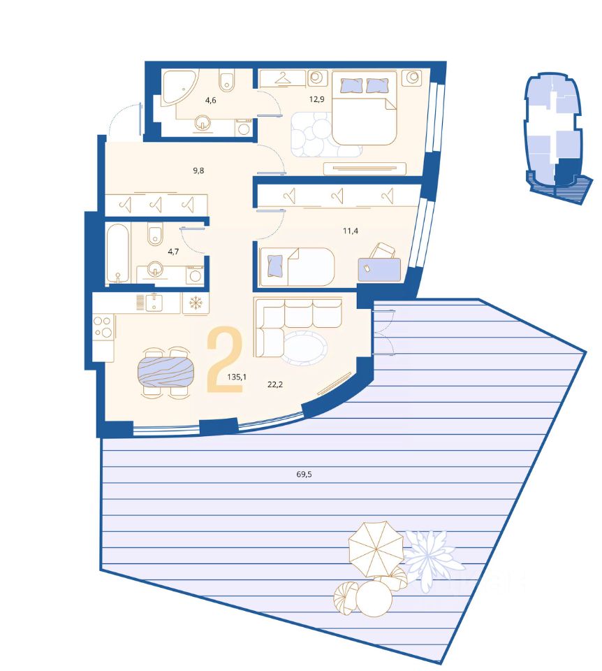 Общая площадь86,45 м2