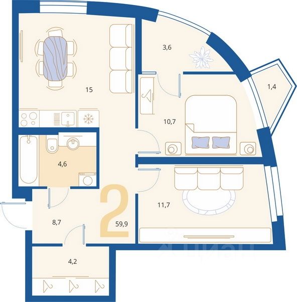 Общая площадь60 м2