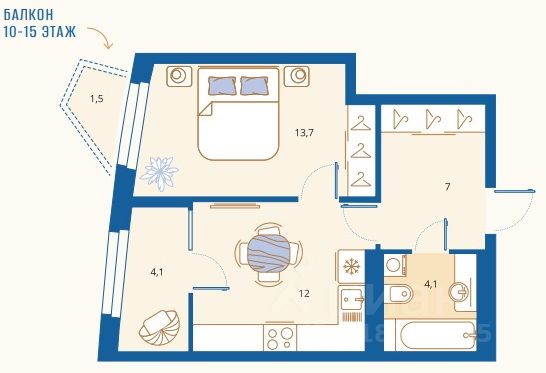 Жилая площадь13,7 м2