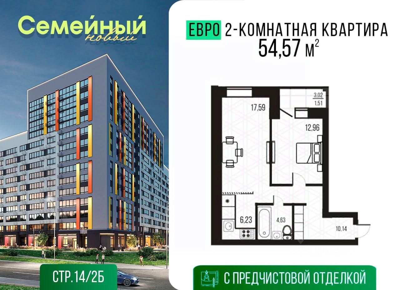 Варианты отделки квартир: •Предчистовая •Базовая •''Комфорт'' •''Комфорт+'' с кухней и техникой Специальные условия: •Семейная ипотека — ставка от 4,6% на весь срок •Дополнительные скидки для всех покупателей — до 500 000 ?