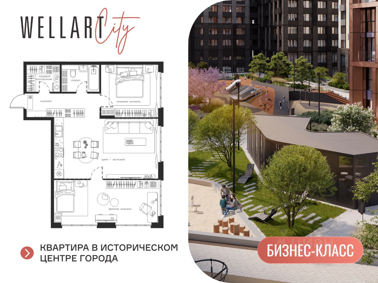 Преимущества WELLART City: -Уникальные строения, каждое со своей архитектурой -Клинкерная плитка и композитные панели в фасадах - Благоустройство с всесезонным озеленением и зонами с биокамином для тихого отдыха - Тихие прогулочные зоны во дворе - Детские зоны с батутами, горки и качели для всех возрастов - Зоны вай-фай во дворе позволят работать вне дома и быть всегда на связи - Собственный прогулочный бульвар и центральная площадь - Просторные холлы с дизайнерским ремонтом, точками wi-fi, зонами коворкинга и мягкими зонами для ожидания