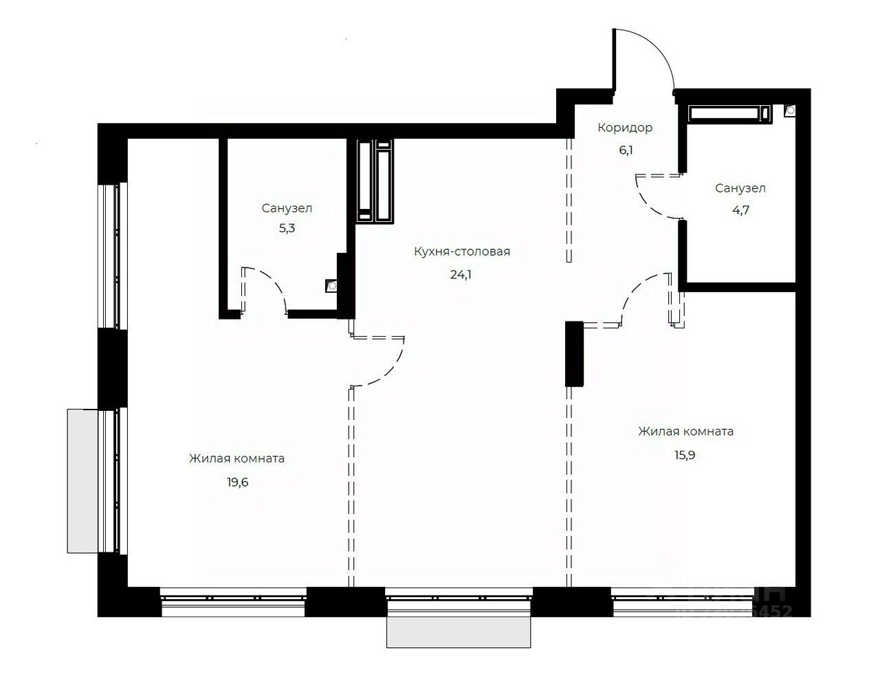 Жилая площадь59,6 м2