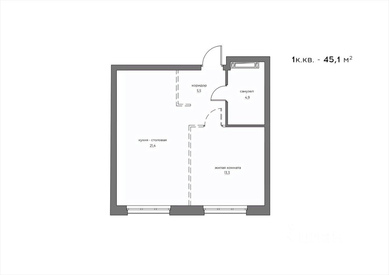 Общая площадь45,1 м2