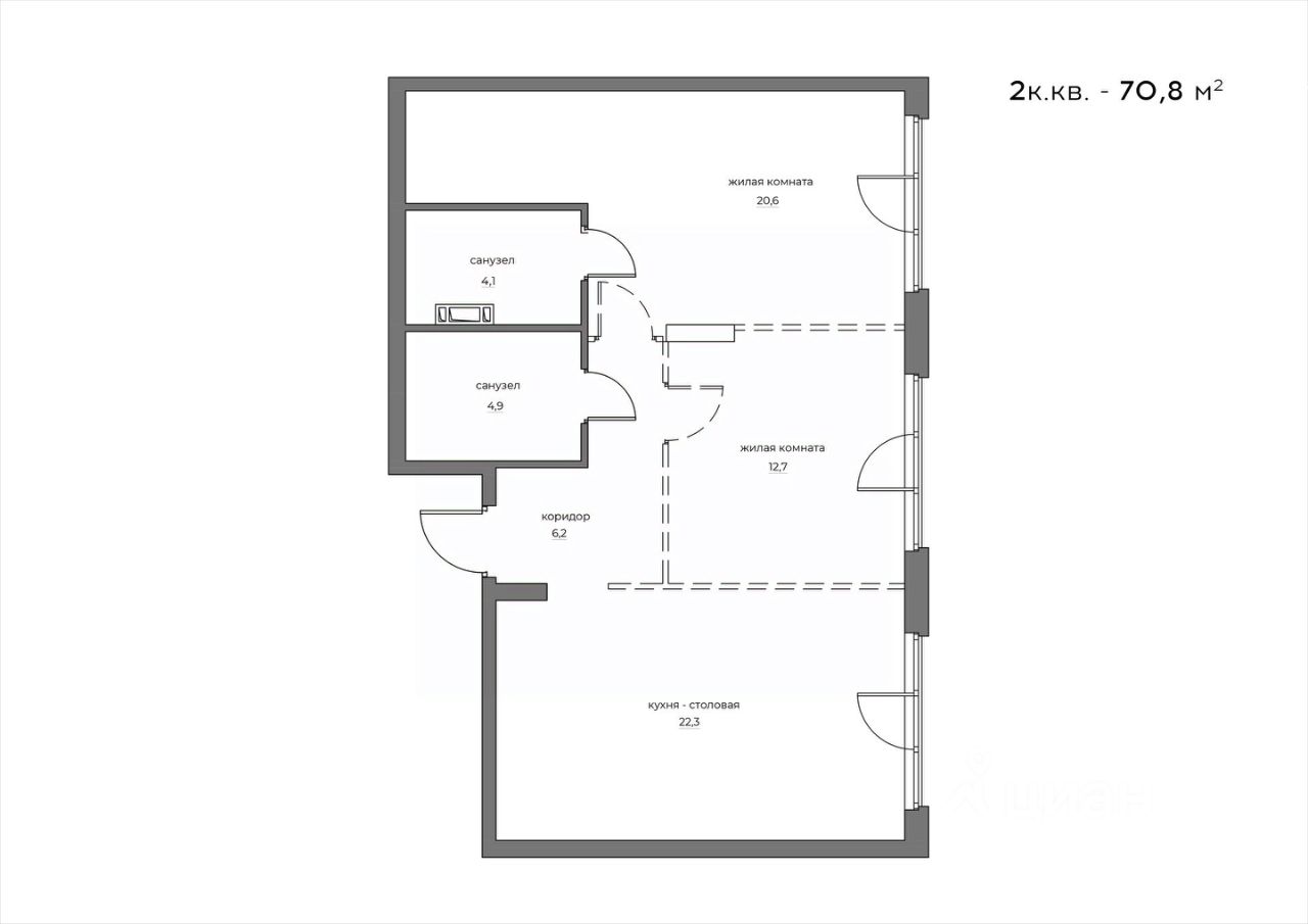 Общая площадь70,8 м2