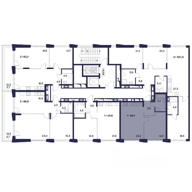 Общая площадь45,7 м2