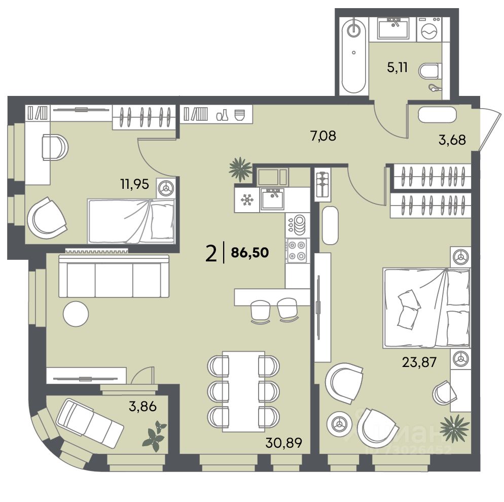 Общая площадь86,5 м2