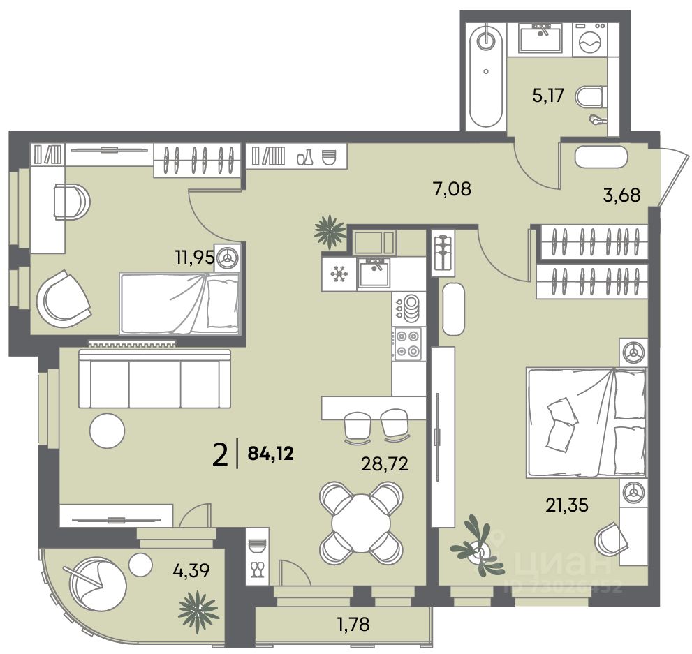 Общая площадь84,12 м2