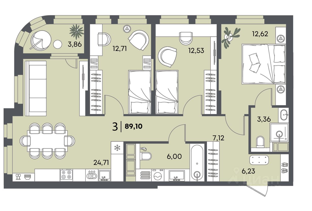 Общая площадь89,1 м2