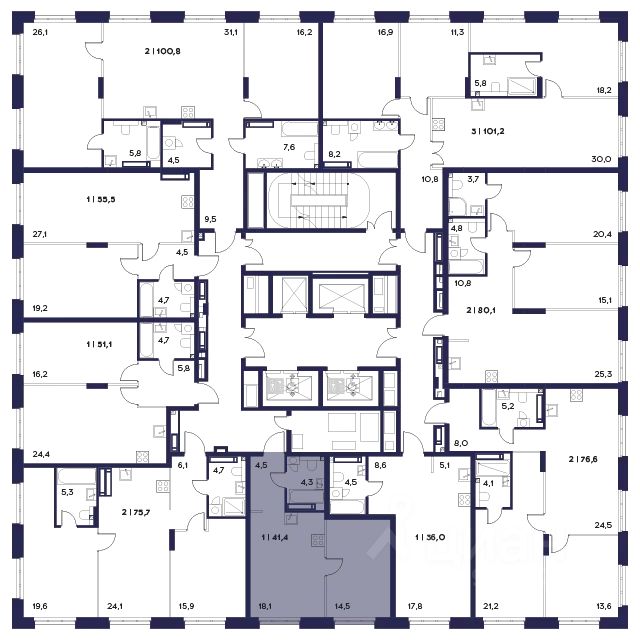 Общая площадь41,4 м2