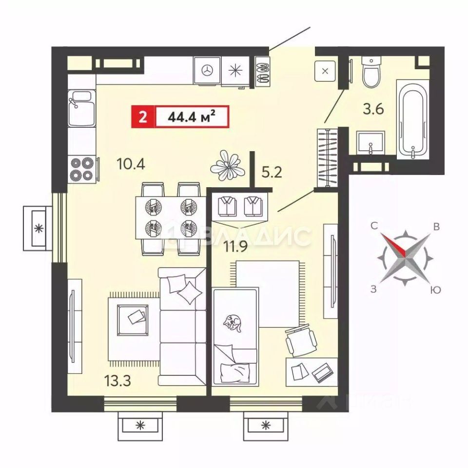 Общая площадь44,1 м2