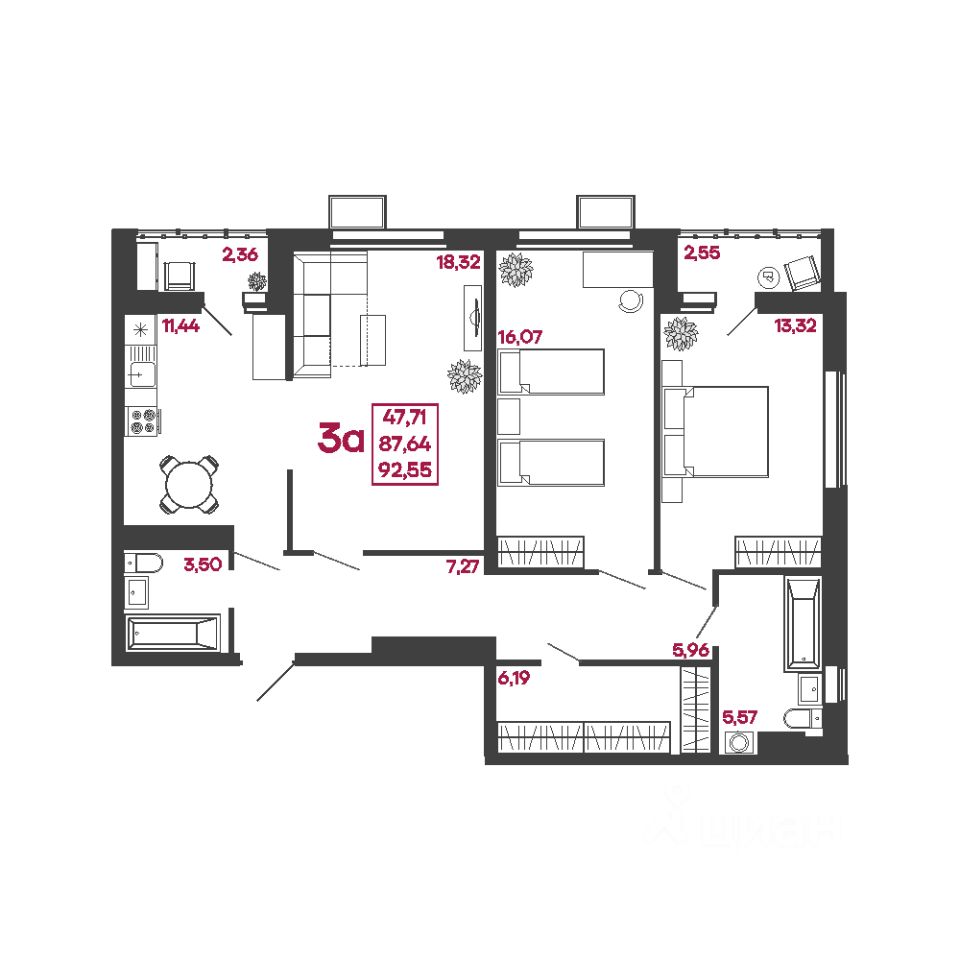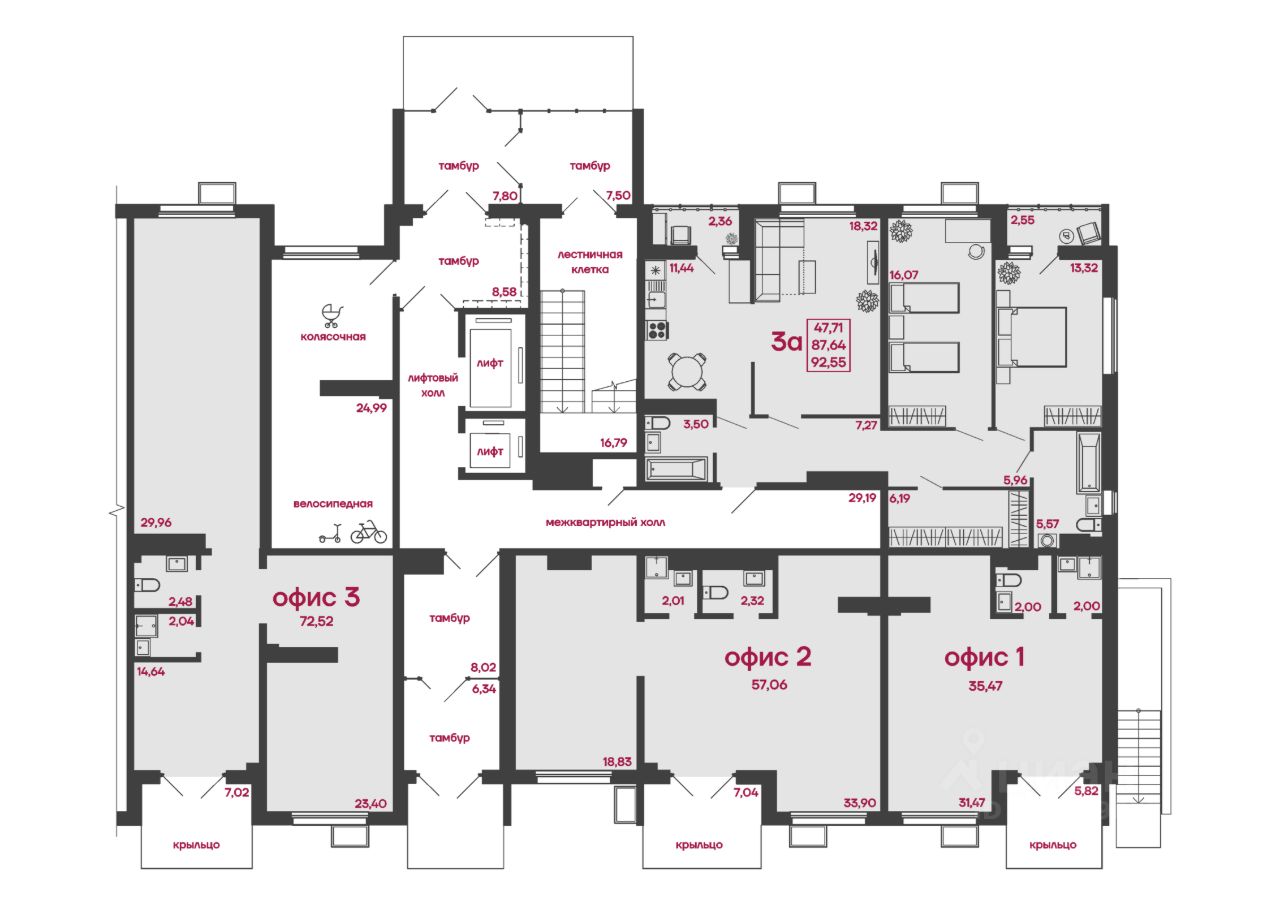 Общая площадь92,55 м2