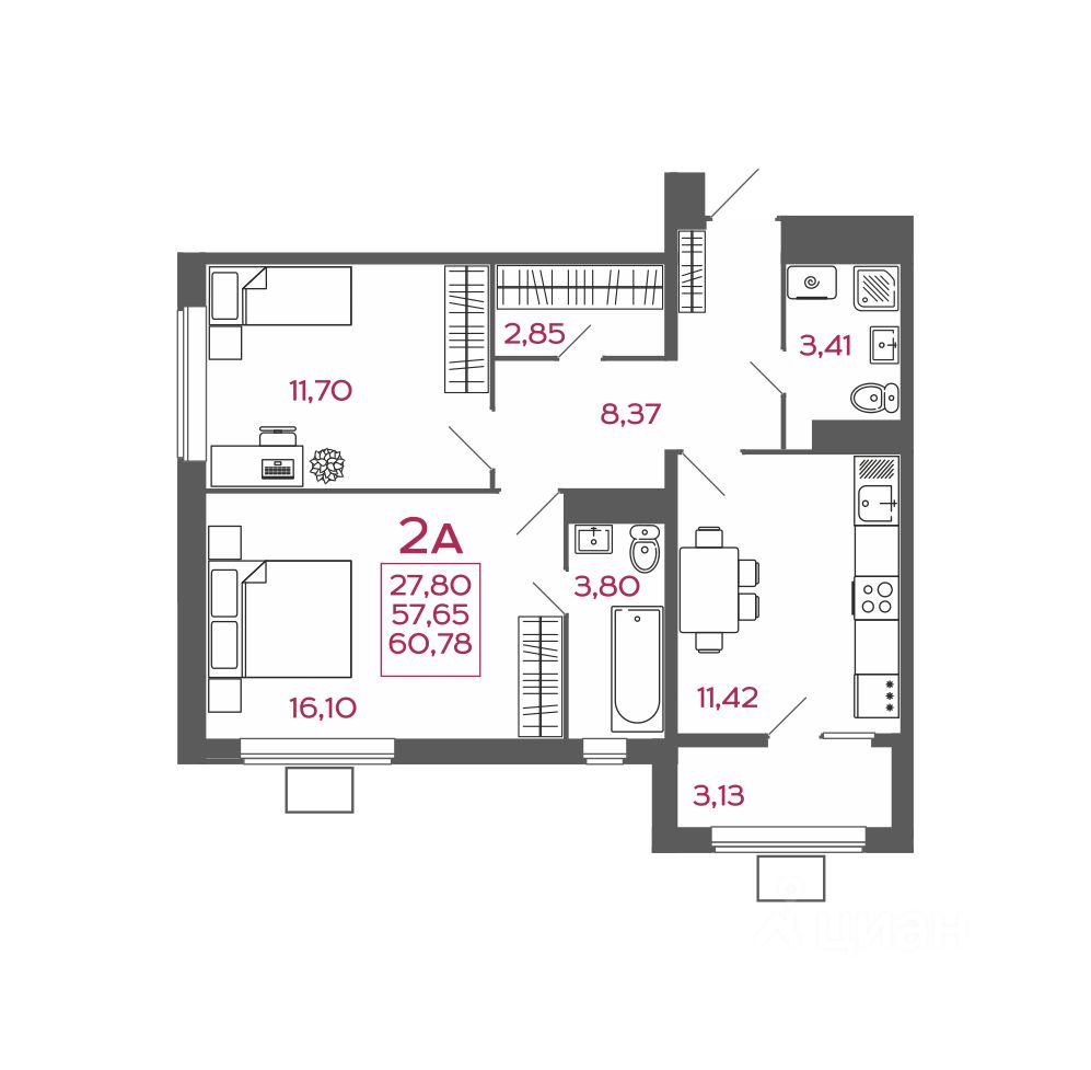Общая площадь60,78 м2