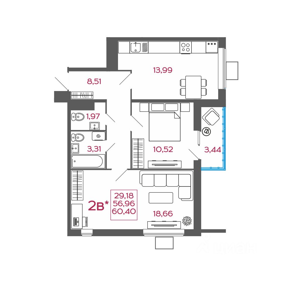 Общая площадь60,4 м2