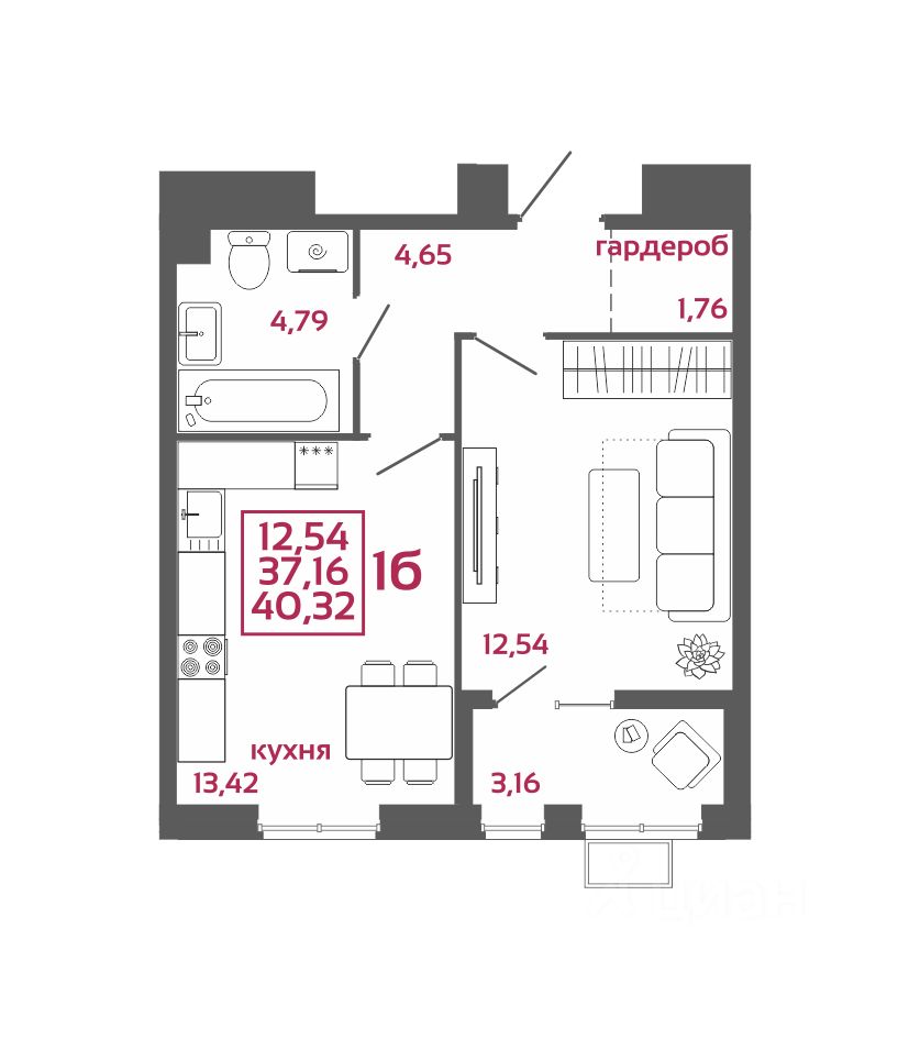 Общая площадь40,32 м2
