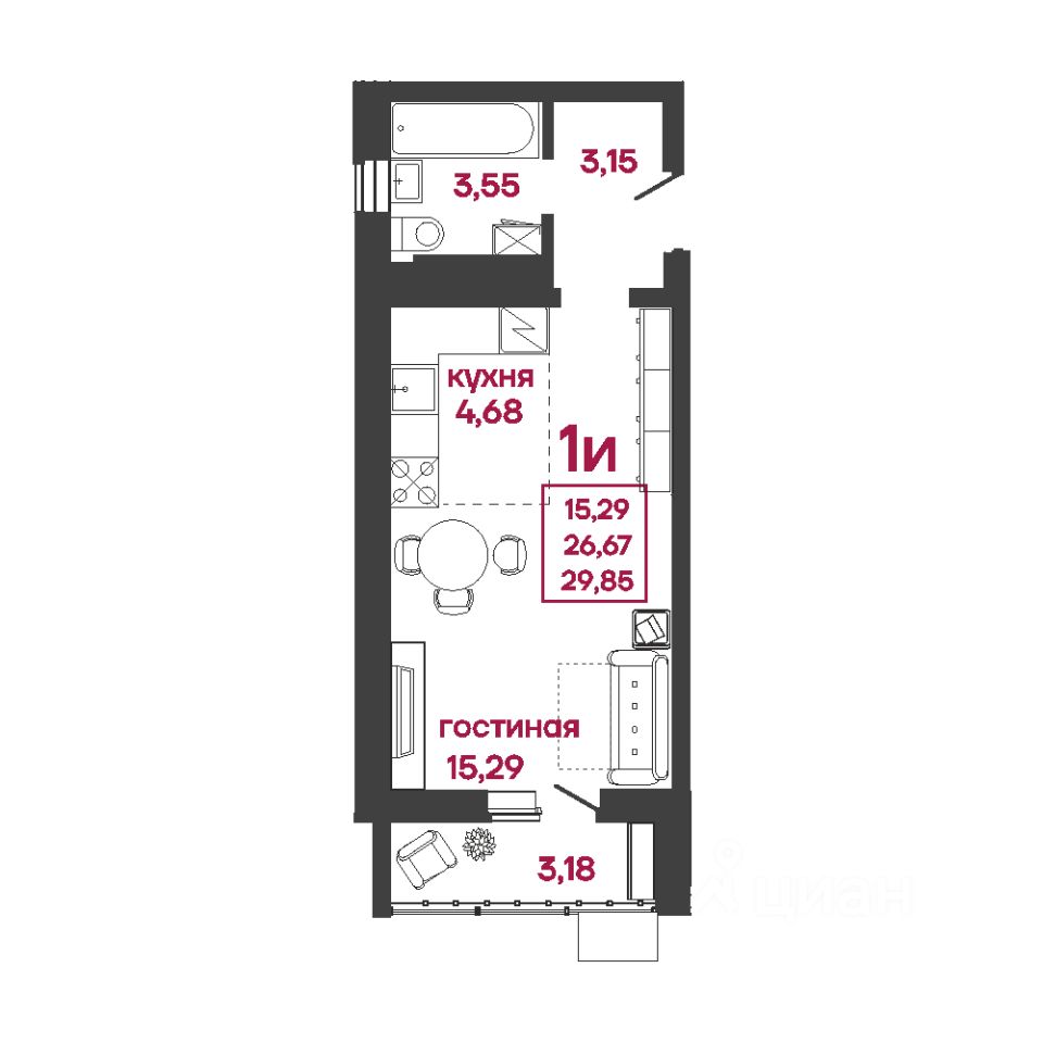 Общая площадь29,85 м2