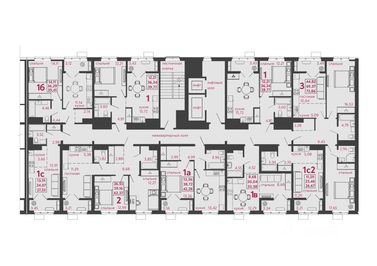 Общая площадь39,41 м2