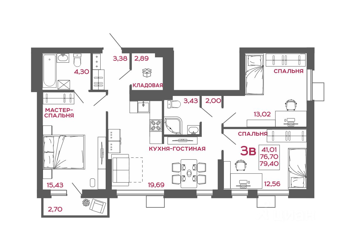Общая площадь79,4 м2