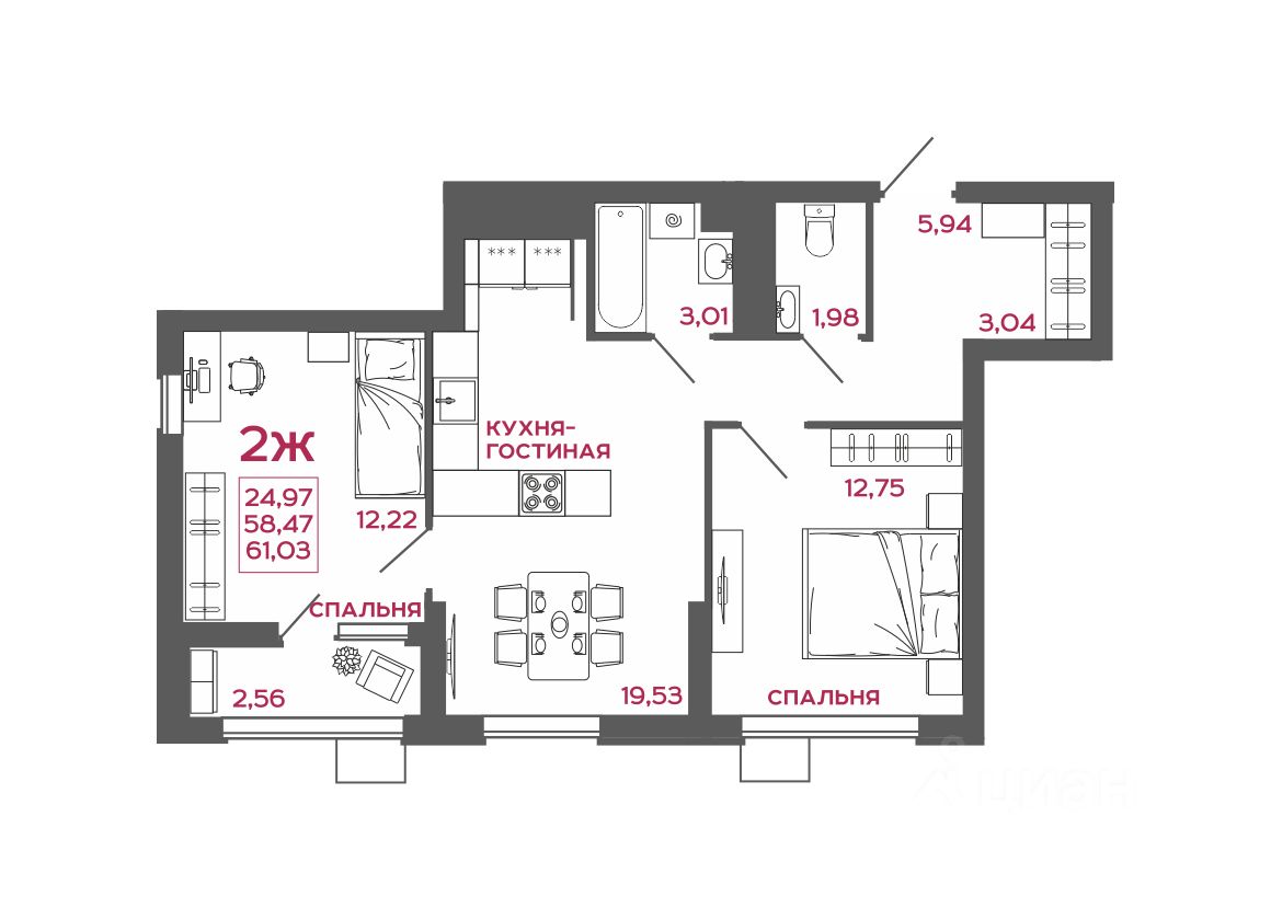 Общая площадь61,03 м2