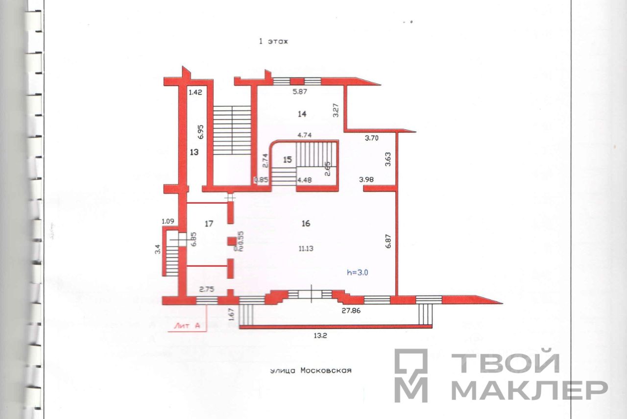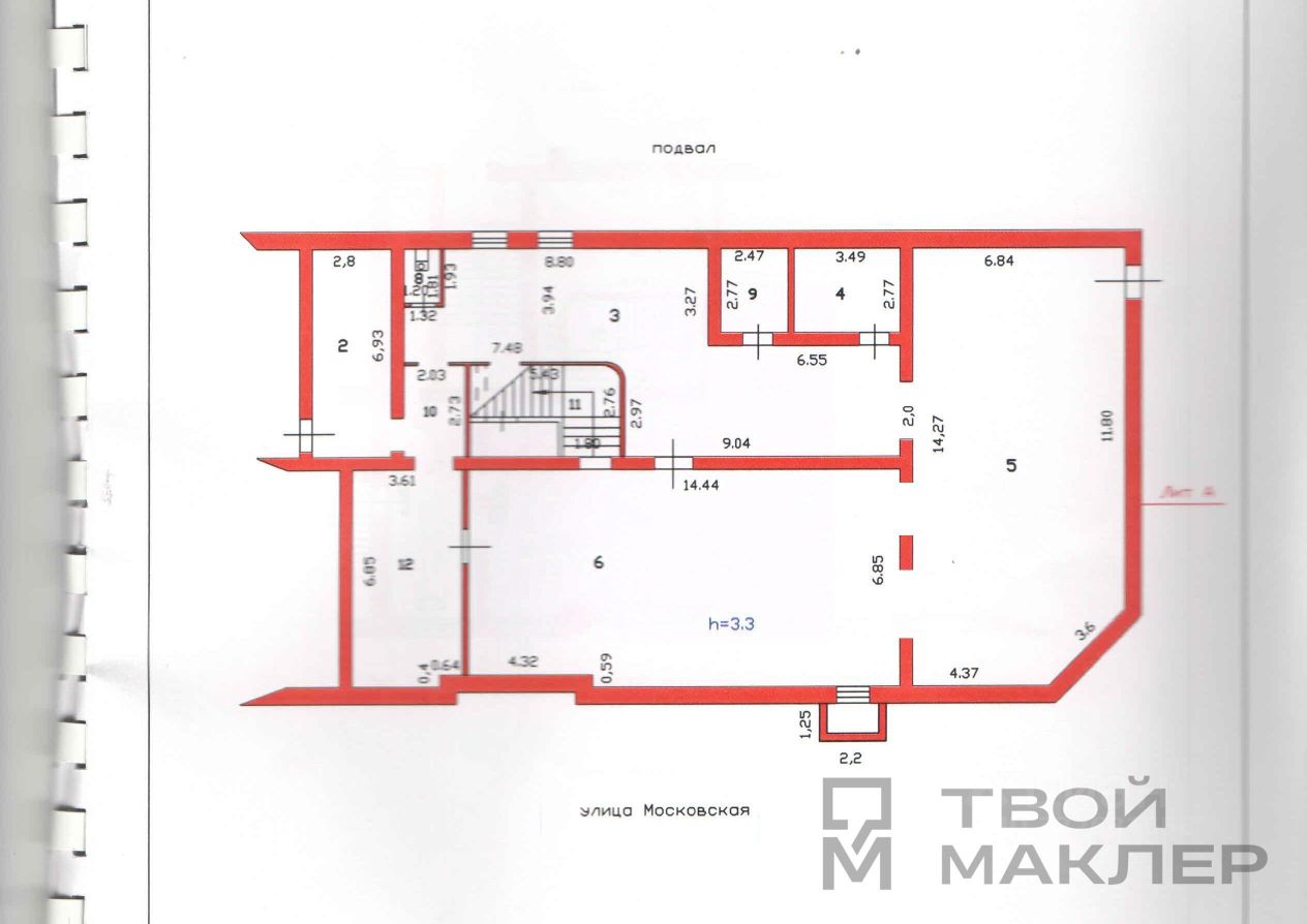 Адрес: г. Пенза, ул. Московская, д. 1, 1 и цокольный этажи. Дом 2007года постройки, Кирпичный, все перекрытия железобетонные. Площадь 490кв.м., из них 150кв.м. - 1 этаж, 340кв.м. - 0эт.