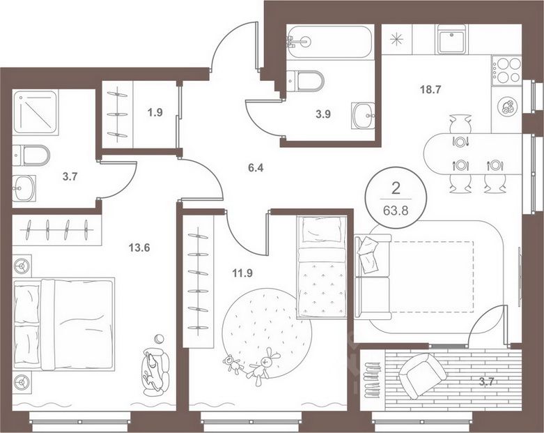 продам 2-к квартира7 783 600 ₽