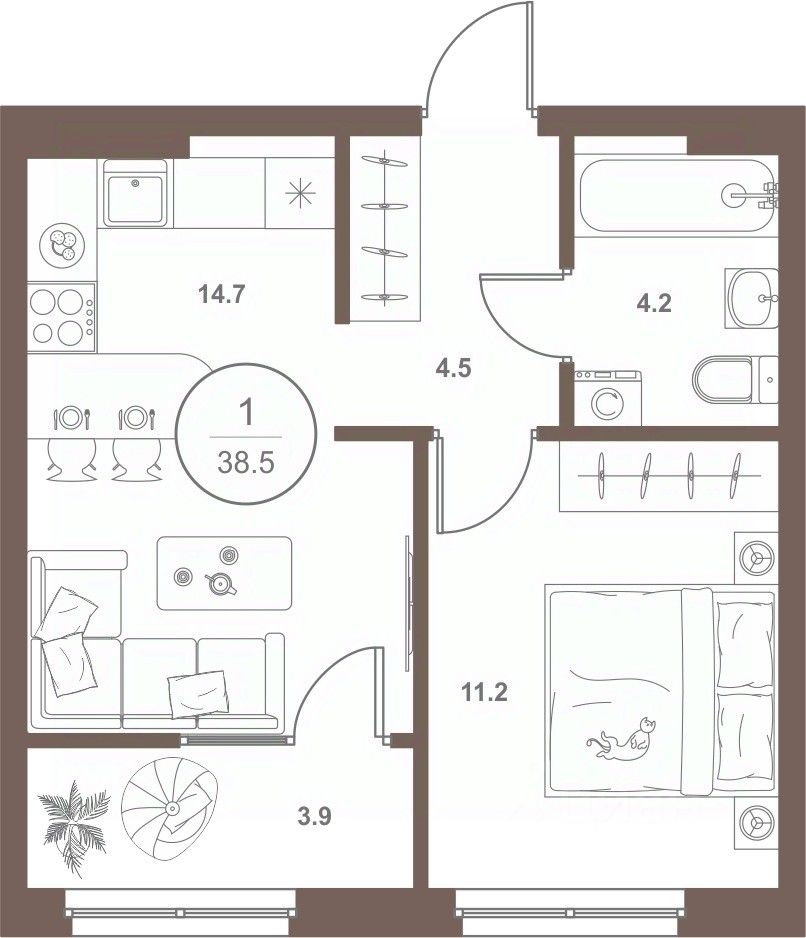 Общая площадь38 м2