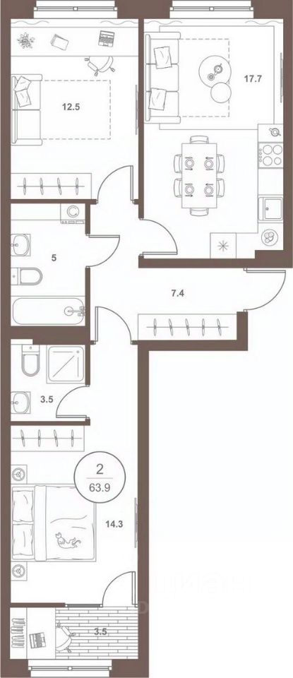 продам 2-к квартира6 985 000 ₽