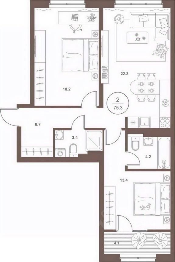 Общая площадь74,2 м2
