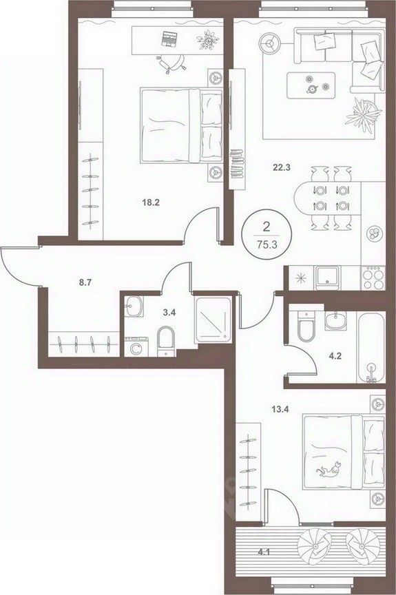 продам 2-к квартира7 585 100 ₽