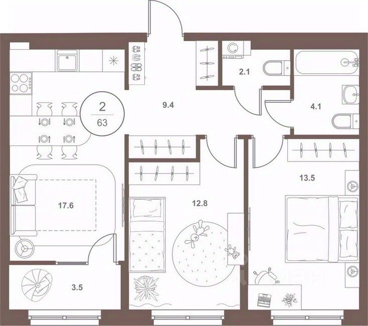 Общая площадь62,9 м2